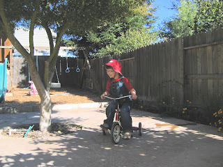 Something great happened while Grandma and Grandpa were visiting. Grandpa discovered that my tricycle could get bigger! Mommy and Daddy and I had thought that I had outgrown it, but look! I can ride it again! I have been riding lots and lots.